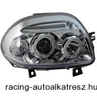 1 készlet (bal, jobb) AE egyedi erős fényű fényszórók Renault Clio B 98-01 átlátszó/ króm, 2 halogén gyűrű, LED parkolófény, tompított fényszóró, tartalmazza az irányjelzőt és a helyzetjelzőt is